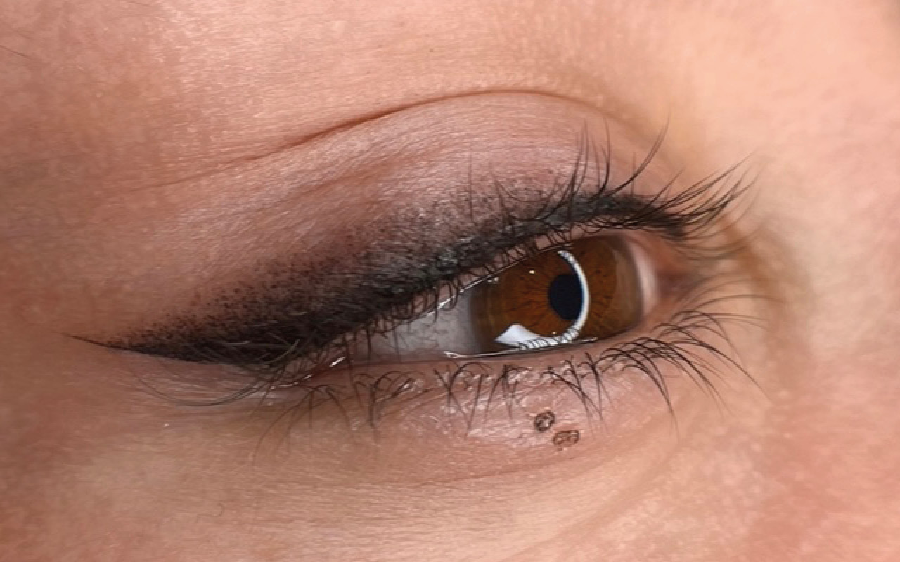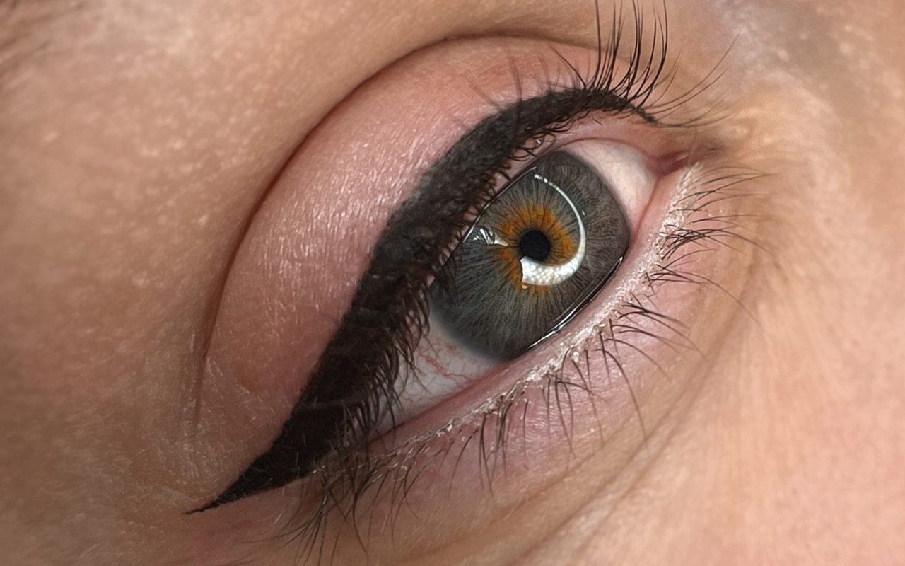 El pigmento se aplica mediante dermógrafo y aguja, mediante micro punciones muy superficiales que permiten trabajar con precisión en una zona tan delicada como el párpado.
